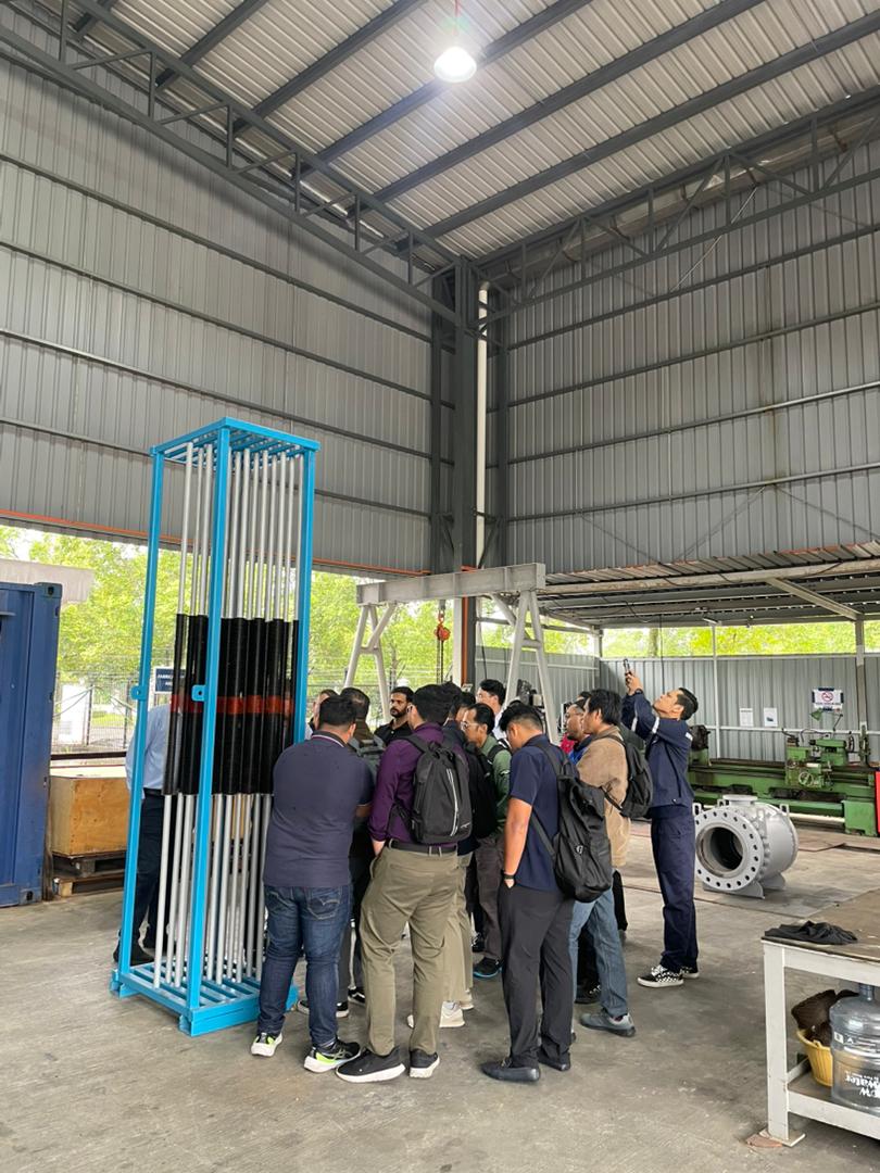 Participants also explored product displays to better understand solutions for pipe hanger issues and joined a shop tour of finned tubes and the Legatest device, gaining firsthand exposure to updated equipment and technologies.